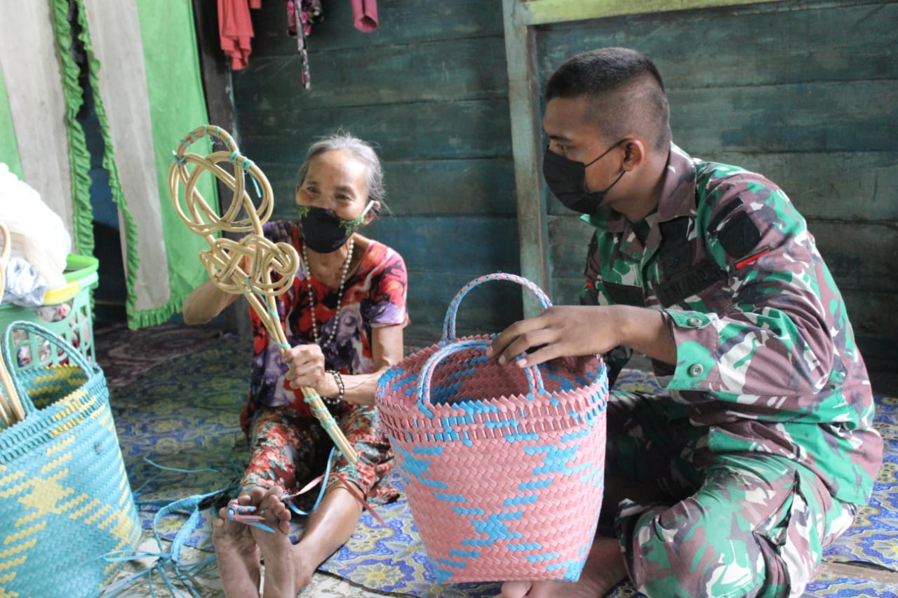 Seperti yang dilakukan Prada Antan Azril Personel Satgas TMMD yang sedang menimba ilmu seni kerajinan tangan berupa anyaman tas, pukul tilam dan pupur basah dirumah warga yang bernama Nenek Tian (68) warga kelurahan kampuri, kecamatan mihing raya, kabupaten gunung mas, senin (20/9/2021).