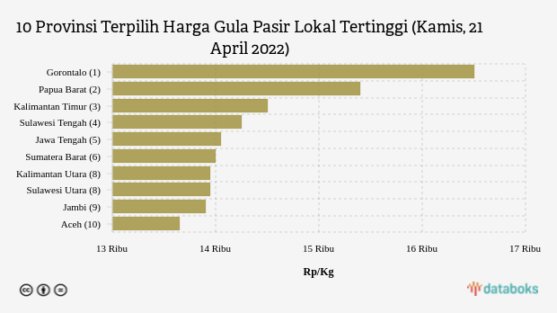 Harga Gula Pasir Lokal di Gorontalo Termahal Se-Indonesia (Kamis, 21 April 2022) | Databoks - Databoks